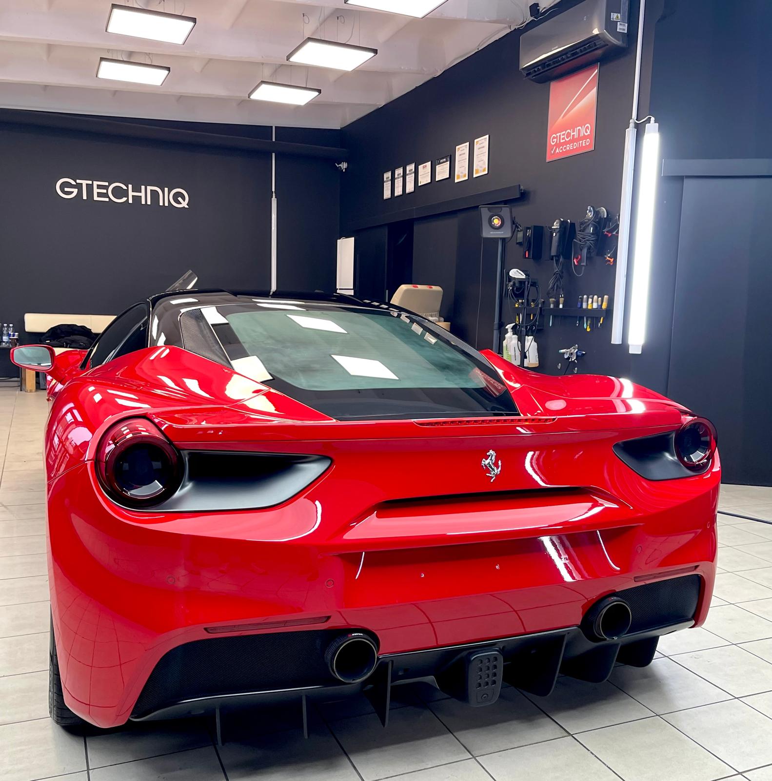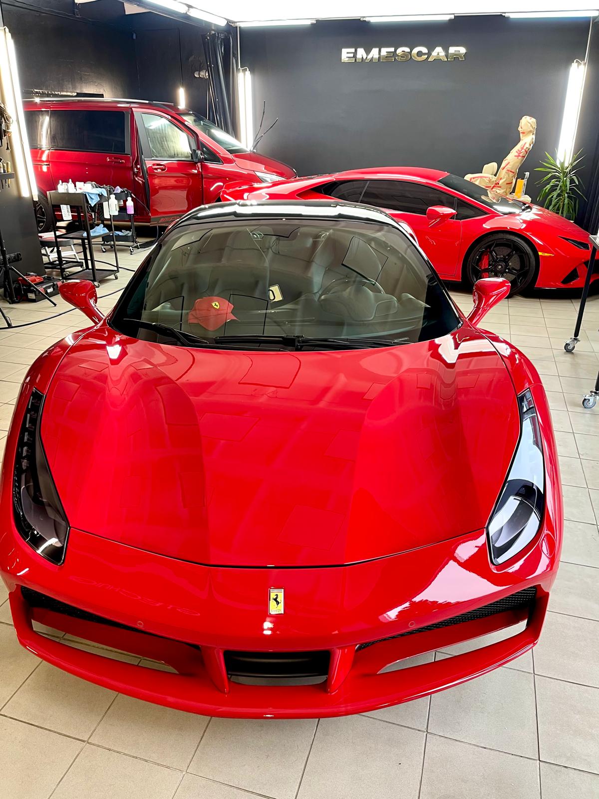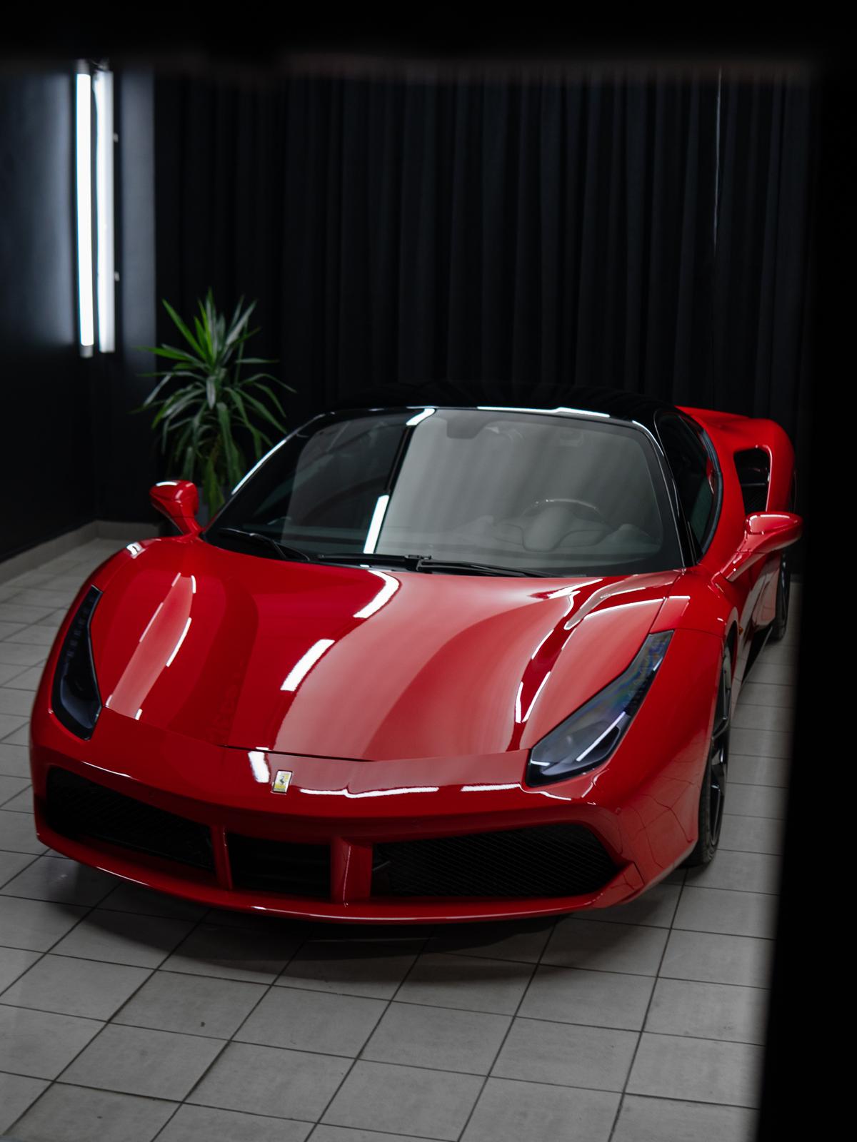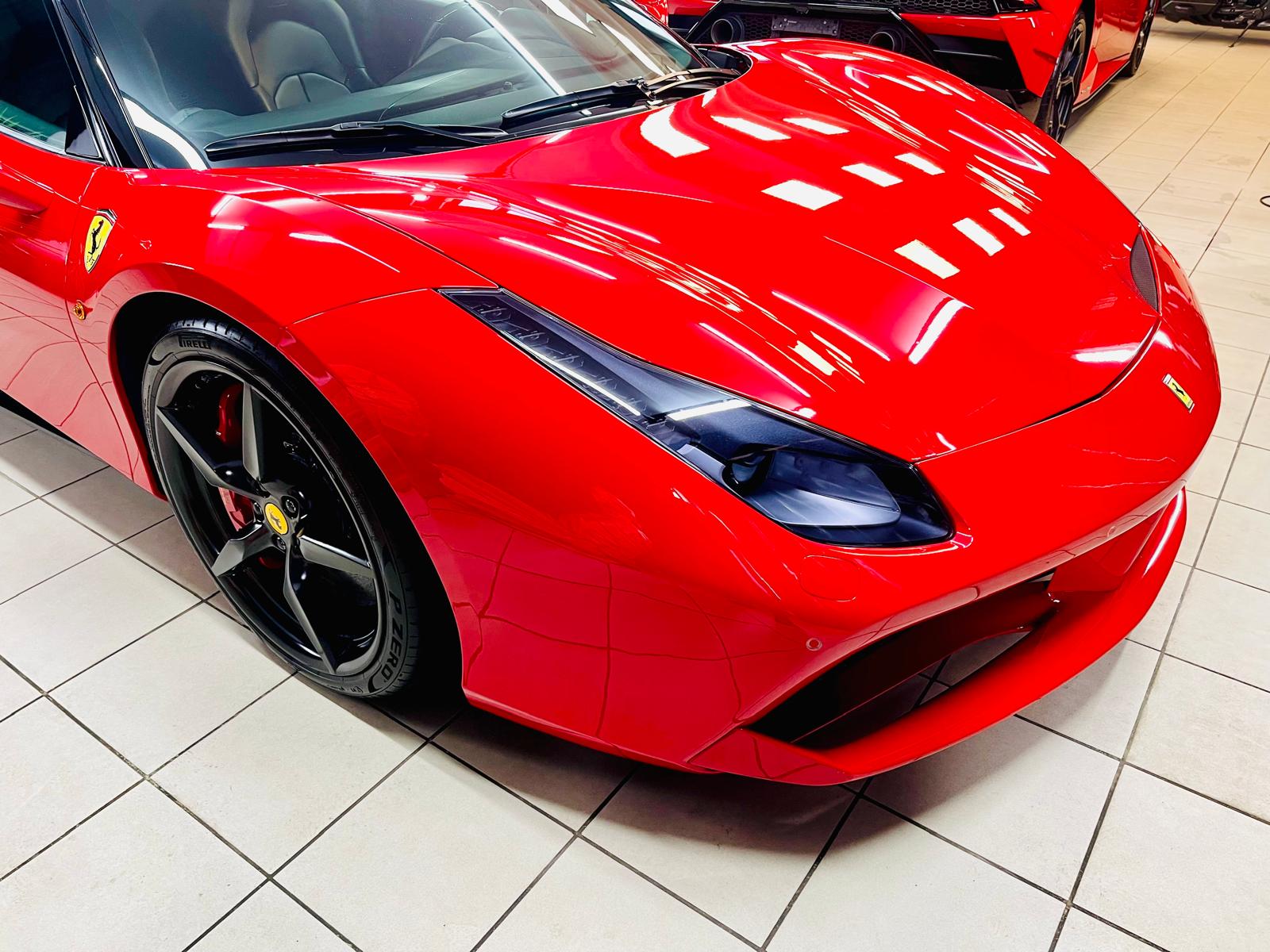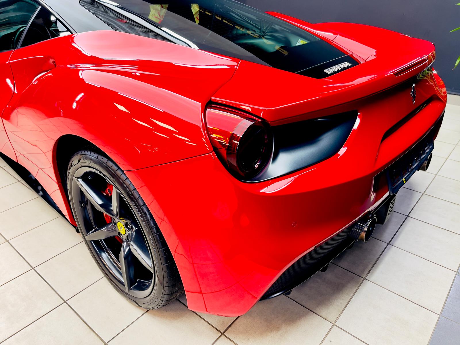Ferrari 488 GTB, to włoskie arcydzieło trafiło do nas na kompleksową pielęgnację. Auto było już zabezpieczone bezbarwną folią ochronną, ale czas pozostawił na niej ślady.